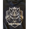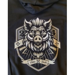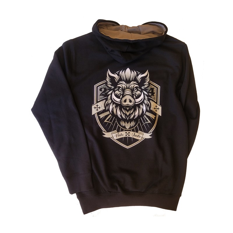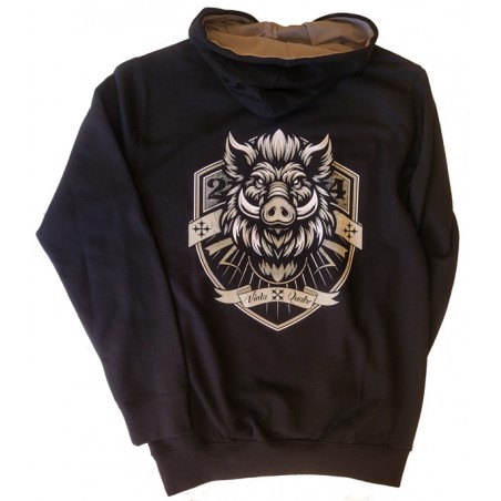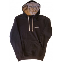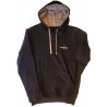 Sweat noir (80% coton, 20% polyester) avec capuche contrastée.